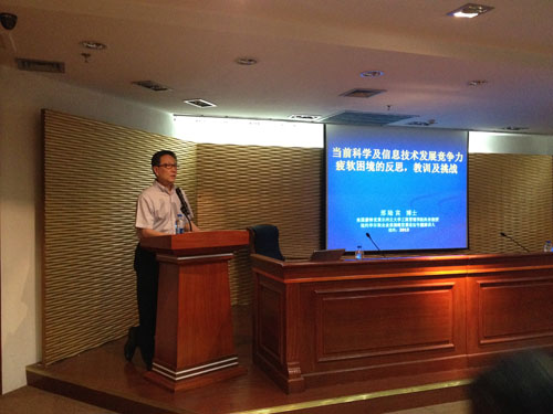 邢陆宾教授首先从全球信息产业销售业绩剖析了当前IT面临的挑战,接着用详实的数据分析指明了未来IT的发展趋势,最后从三个角度的“创新”反思科学技术的发展规律,特别介绍了信息技术与当前重要科学问题的相互关联和影响。讲座过程中,邢教授结合自己的实践和研究经历,讲述了他在信息科学领域独到的见解,给在座的师生以深刻的启发。在问答环节,在场师生踊跃提问,气氛十分热烈。