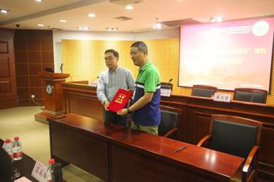 海天集团总裁助理兼人力资源部部长虞文贤、副校长郜正荣、机械与自动控制学院院长陈本永共同签署了《海天国际交流成长公益基金捐赠协议书》,郜正荣副校长为海天集团颁发捐赠证书。