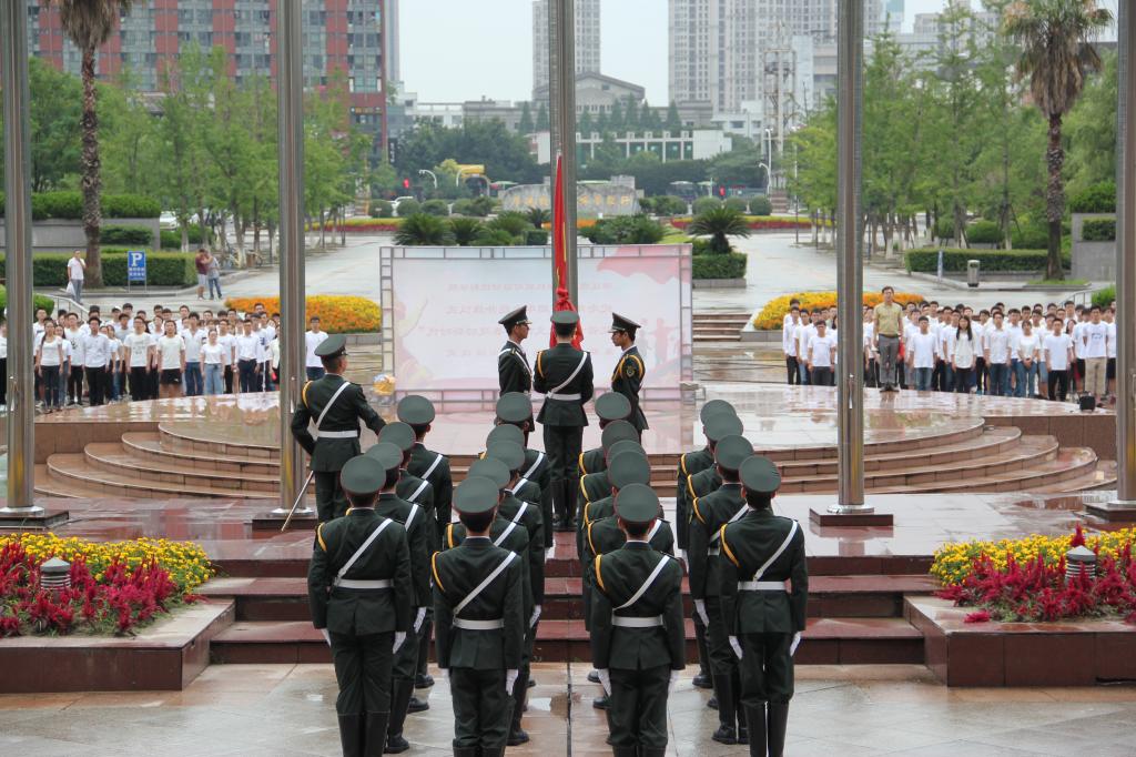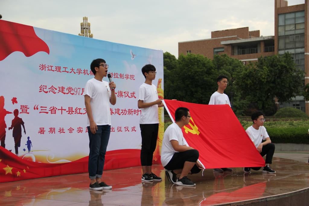 2018年7月1日是党的97岁生日。清晨,机械与自动控制学院的党员们在校世纪广场举行了庄严的升旗仪式。本次升旗仪式的主题是纪念建党97周年,同时也是学院“三省十县红文化•青春建功新时代”暑期社会实践团的出征仪式。参加仪式的有学院党委副书记苏丽辉,团委书记、学工办主任方水明,各年级辅导员,新发展党员、学生党员代表以及暑期社会实践团代表。仪式由方水明主持。
