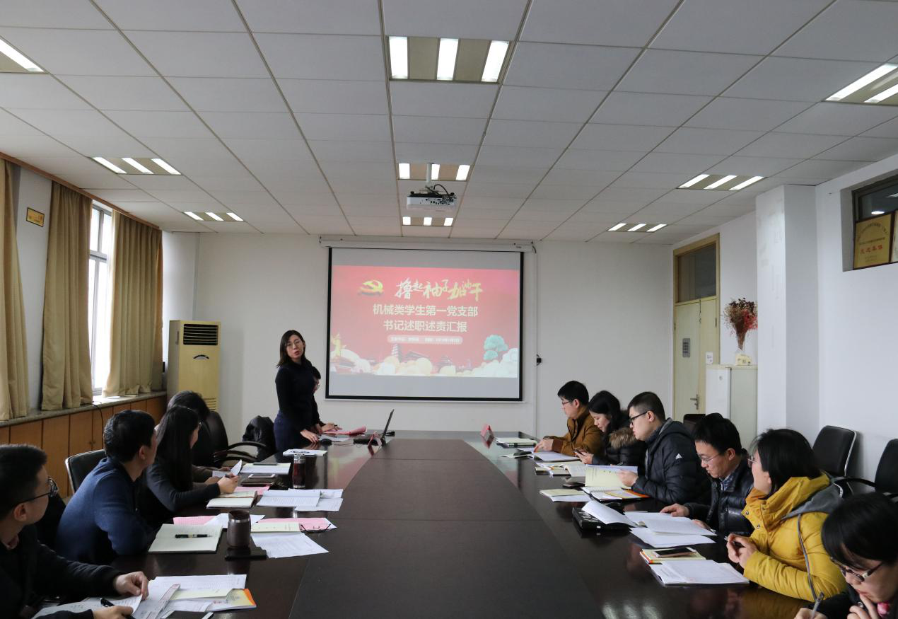 会上,来自学院办公室党支部、机械设计制造系第二党支部、测控技术与仪器系党支部、机械工程实验教学中心党支部、机械类学生第一党支部、机械类学生第二党支部、控制工程研究生党支部和测试研究生党支部的八位支部书记,结合2018年具体工作内容和成效,从个人履职情况、重点任务完成情况、问题分析与对策等方面进行述职汇报,并交流工作经验与收获。随后,各支部领取《中国共产党支部工作条例(试行)》、《浙江理工大学党支部工作流程手册》、《党支部工作挂图》等支部工作材料。结合校党委组织部的要求与支部工作材料中的有关内容,组织员王淯霄就学院2018年度民主评议党员工作做简单说明。