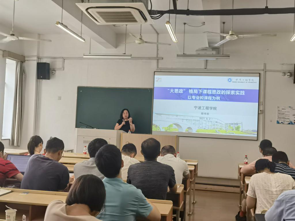 邀请宁波工程学院专家郑书华教授做相关专题培训报告,报告主题为:“大思政”格局下课程思政的探索实践-以专业和课程为例。报告会由学院副院长潘骏主持,学院院长李秦川、学院党委副书记王吴芳及学院专任教师共同参与培训交流。