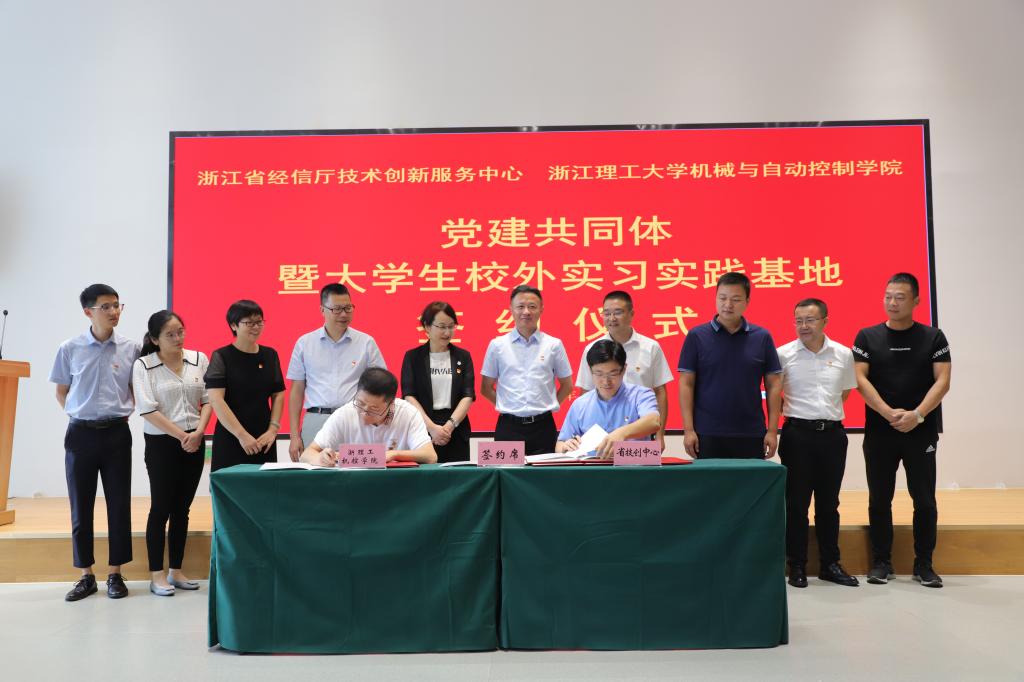 为进一步发挥党建引领,促进党建与业务工作深度融合,提升产学研合作育人实效,8月10日上午,机械与自动控制学院和浙江省技术创新服务中心党建共同体暨大学生校外实习实践基地签约仪式在白塔·浙江省全球精准合作服务综合体举行。省经信厅党组成员、副厅长盛勇军,校党委副书记姚珺出席会议并作讲话,会议由浙江省技术创新服务中心副主任王栋主持。省技术创新服务中心主任徐吉成、白塔综合体企业家代表、校相关职能部门领导、机械与自动控制学院党政班子成员、教师代表、研究生代表等60余人参加仪式。