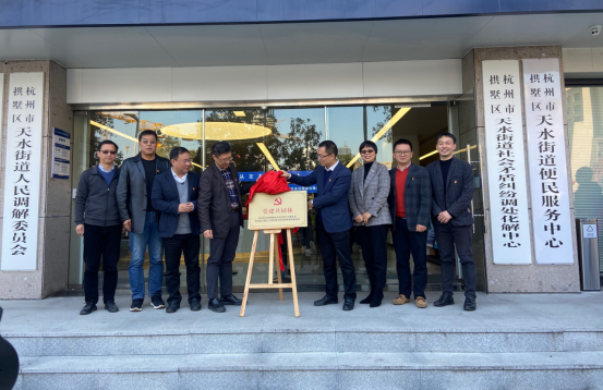 与天水街道举行党团共建签约及授牌仪式。学院党委书记苏志俭、副书记王吴芳、学院青促会副会长孙良、学院办公室党支部成员、青年教师代表等参加签约授牌仪式。