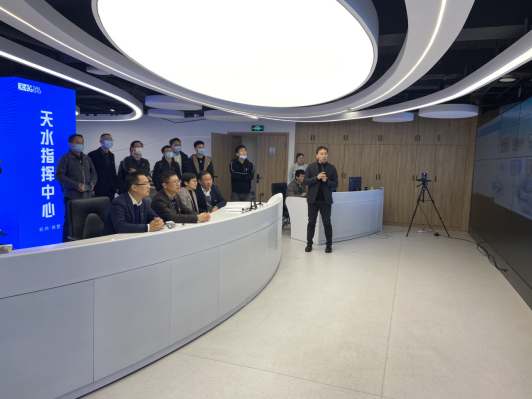 天水街道党工委副书记、办事处主任卢名辉携街道党政班子陪同学院一行参观考察天水街道社会治理综合服务中心。学院挂职干部天水街道党工委委员张光向大家介绍了天水街道数字驾驶舱及各个模块的应用场景。数字驾驶舱依托数字赋能,着力提升街区治理水平效能。