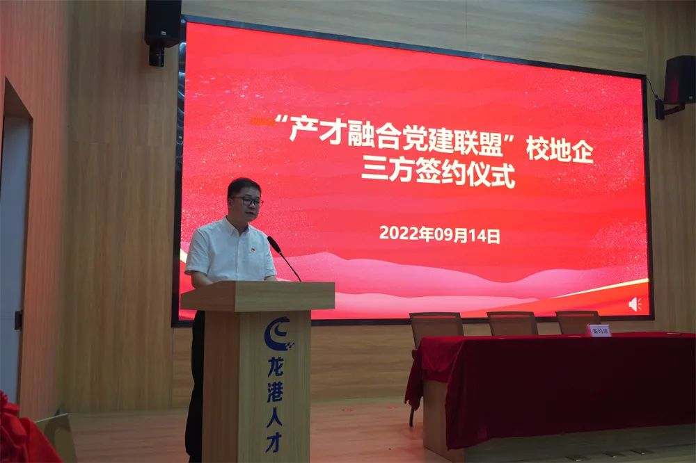 党委祝贺“产才融合党建联盟”校企地三方共建签约仪式顺利进行。并表示坚持党建引领,发挥学校对龙港经济社会发展的智力和科技支持,进一步深化浙江理工大学龙港研究院服务好地方的创新性举措。期待通过搭建平台,发挥政府、学校、企业的各自优势,结出校企地合作硕果。
