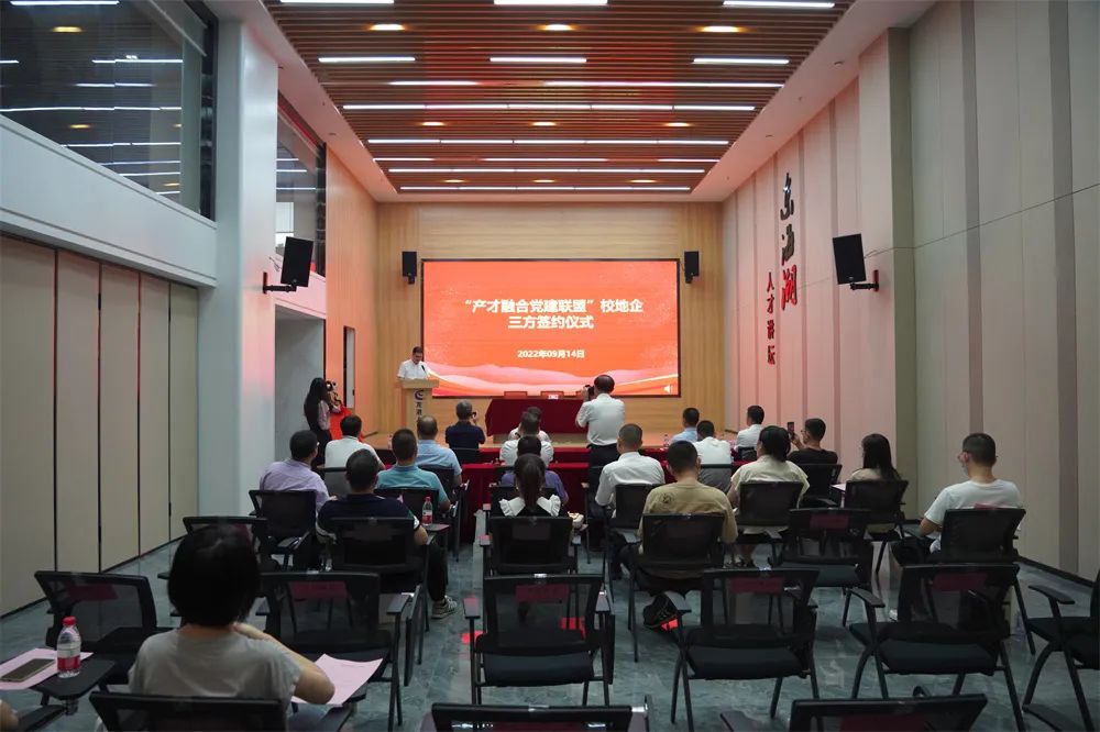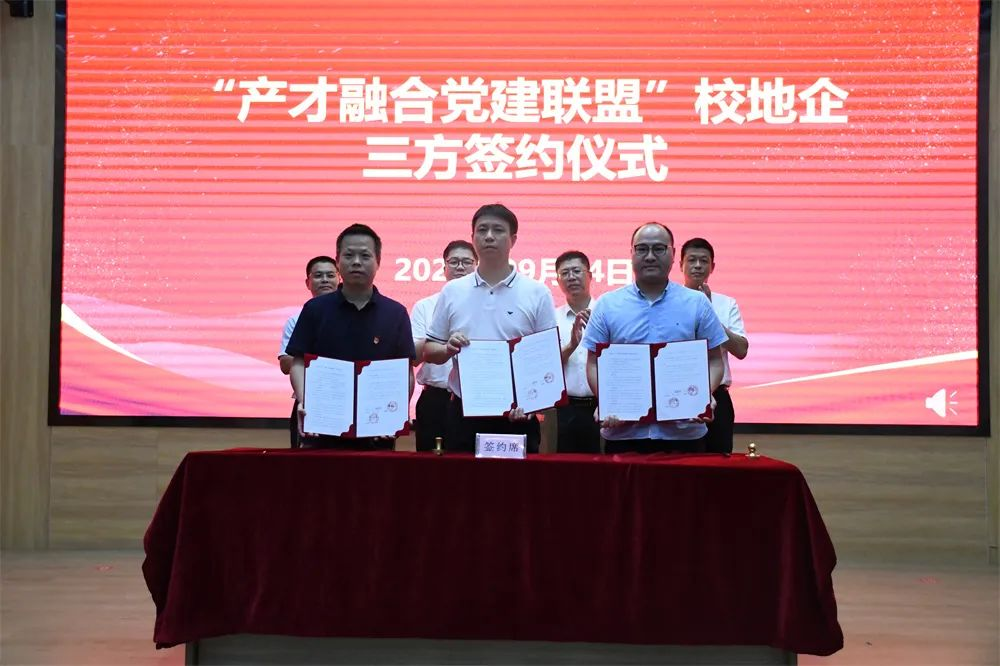 董敢部长与苏志俭书记共同为校地企“产才融合党建联盟”揭牌