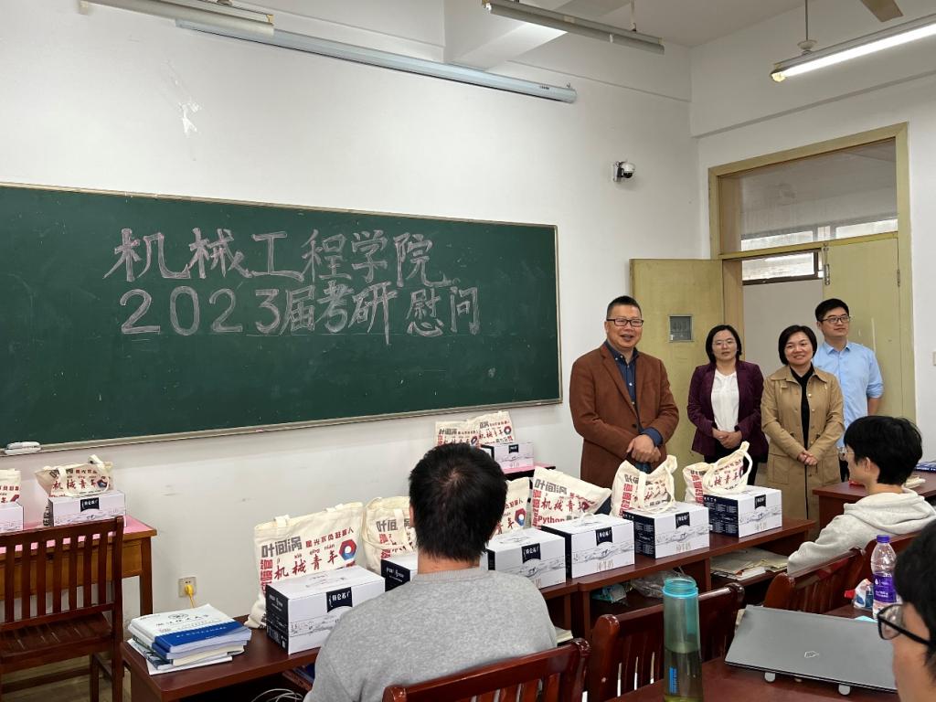 考研学子坚定备考信心,缓解压力,传递温暖和力量,鼓舞考研士气,营造和谐温暖的学院氛围,近日,学院副院长潘骏、学院党委副书记陆秋萍、学工办主任朱敏,毕业班辅导员李晨曦前往15号楼403考研教室慰问备战考研的学子们。