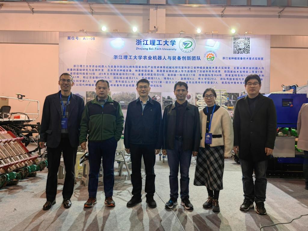 农业机器人与装备创新团队科研成果为主体,现场展出了采茶机、采摘机器人、移栽机、果蔬采收装备等系列样机及产品10余台。农机团队师生40余人以饱满的热情参与了布展及现场接待等工作。当日,浙江理工大学展区吸引了众多与会人员驻足观看咨询,在专业团队的演示和讲解下,现场观众与参展企业表现出浓厚的合作意愿,现场反响强烈。