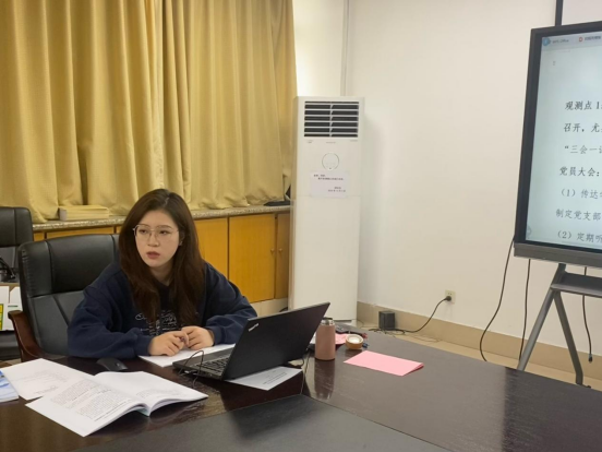 学习会第三阶段,学院党委组织员万苏影做党支部标准化建设培训,重点围绕党支部标准化建设考核标准、组织生活、“三会一课”记录、党员发展等方面进行说明。